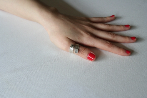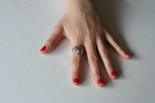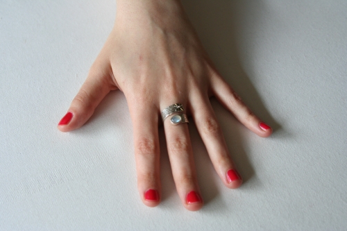 Adjustable Ring 92.5% Silver - Handmade in India. With real gemstone [Moonstone]