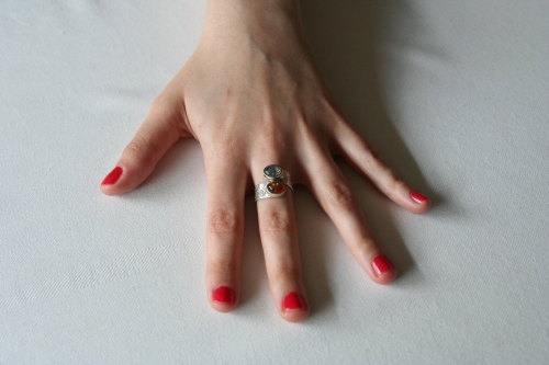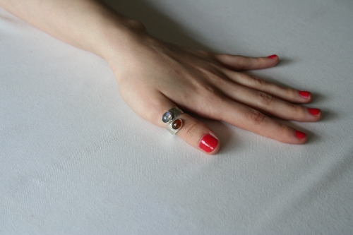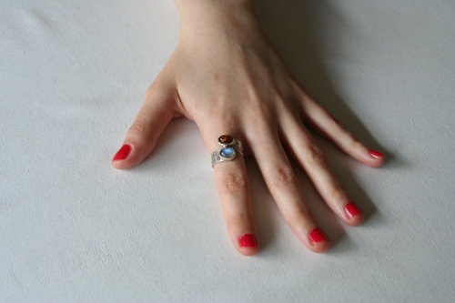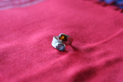 Adjustable Ring 92.5% Silver - Handmade in India. With real gemstones [Moonstone & ?]