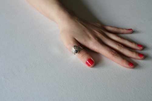 Adjustable Ring 92.5% Silver - Handmade in India. With real gemstone [Moonstone]