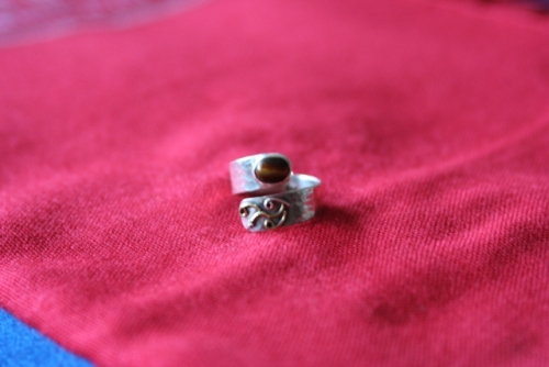 Adjustable Ring 92.5% Silver - Handmade in India. With real gemstone [Tigers Eye]