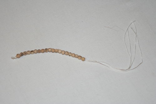 The traditional way of keeping track of the number of rounds of the Hare Krishna mantra we have chanted is to use "counting beads." These japa counting beads are small beads on a string that one attaches to the outside of the bead bag and each time he chants a round he moves one bead down. This way there is always an accurate count of how many rounds of the Hare Krishna mantra have been chanted.