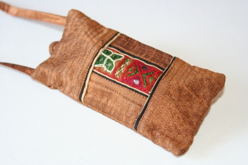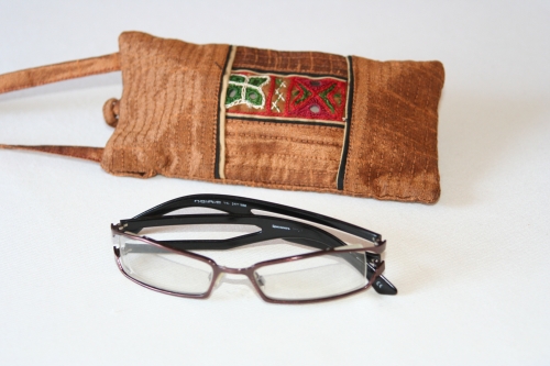 Silk Embroidered Glasses/Mobile Bag. Handmade in India - Brown