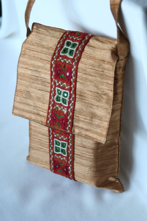 Pure Silk Embroidered Shoulder Bag. Handmade in Rajastan, India.