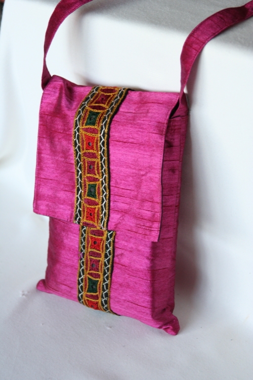 Pure Silk Embroidered Shoulder Bag. Handmade in Rajastan, India.