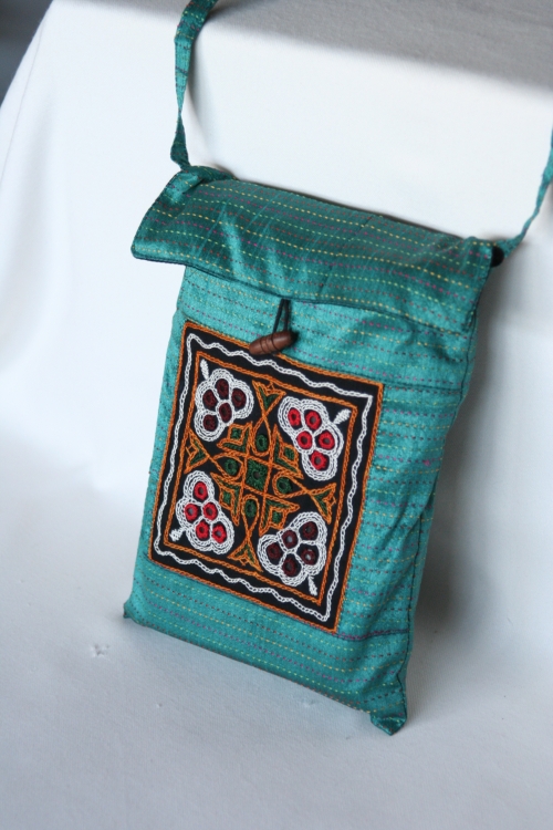 Pure Silk Embroidered Shoulder Bag. Handmade in Rajastan, India.